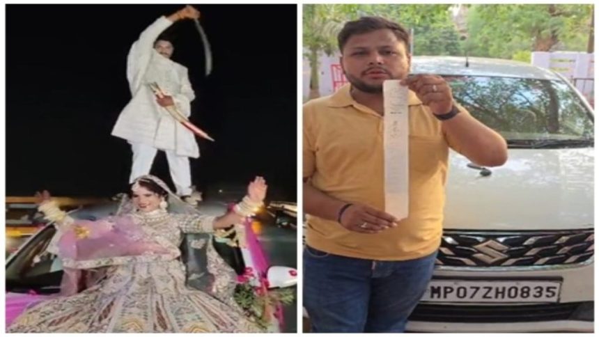 ग्वालियर/ ‘इश्क दी गली विच नो एंट्री’ फिल्मी गाने पर रील बनाने वाले दूल्हा दुल्हन पर एक्शन देखने मिला है। ग्वालियर ट्रैफिक पुलिस ने गाड़ी मालिक पर 500 रुपये जुर्माना लगाया है। वहीं गाड़ी मालिक ने जुर्माना भरने के बाद भविष्य में रील बनाने के लिए जान जोखिम में न डालने की अपील भी लोगो से की है.