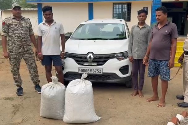 गरियाबंद,16 मई 2025/ देवभोग थाना क्षेत्र के खुटगांव चेक पोस्ट पर बड़ी कार्रवाई करते हुए पुलिस ने ओडिशा के 3 तस्करों को 56 किलो गांजे के साथ गिरफ्तार किया है। जब्त किए गए गांजे की कीमत करीब 5 लाख 65 हजार रुपये आंकी गई है। तस्करी में इस्तेमाल की जा रही करीब 7 लाख रुपये की एक कार को भी पुलिस ने जब्त किया है.