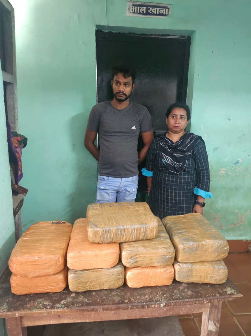 इसी तारतम्य में दिनांक 16.05.25 को एण्टी क्राईम एण्ड साईबर यूनिट की टीम को सूचना प्राप्त हुई कि थाना गंज क्षेत्रांतर्गत रेलवे स्टेशन के बाजू एक्सप्रेस-वे रोड के पास कुछ व्यक्ति अपने पास गांजा रखे है तथा कही जाने की फिराक में है। जिस पर अतिरिक्त पुलिस अधीक्षक शहर श्री लखन पटले, अतिरिक्त पुलिस अधीक्षक क्राईम संदीप मित्तल, नगर पुलिस अधीक्षक कोतवाली श्री केशरनंदन नायक एवं उप पुलिस अधीक्षक क्राईम श्री संजय सिंह द्वारा प्रभारी एण्टी क्राईम एण्ड साईबर यूनिट तथा थाना प्रभारी गंज को आरोपियों को गांजा के साथ रंगेहाथ पकड़ने हेतु निर्देशित किया गया। जिस पर वरिष्ठ अधिकारियों के निर्देशन में एण्टी क्राईम एण्ड साईबर यूनिट तथा थाना गंज पुलिस की संयुक्त टीम द्वारा उक्त स्थान पर जाकर मुखबीर द्वारा बताये हुलिए के व्यक्तियों को चिन्हांकित कर पकड़ा गया। पूछताछ में व्यक्तियों ने अपना नाम मोह. जावेद शेख एवं शबनम आरा शेख निवासी उड़ीसा का होना बताया। टीम के सदस्यों द्वारा उनके पास रखे बैग की तलाशी लेने पर बैग में गांजा रखा होना पाया गया । जिस पर टीम के सदस्यों द्वारा दोनो आरोपियों को गिरफ्तार कर उनके *कब्जे से 18 किलो 380 ग्राम गांजा जुमला कीमती लगभग 2,00,000/- रूपये जप्त* कर आरोपियों के विरूद्ध थाना गंज में अपराध क्रमांक 128/25 धारा 20बी नारकोटिक एक्ट का अपराध पंजीबद्ध कर आरोपियों के विरूद्ध कार्यवाही किया गया है.