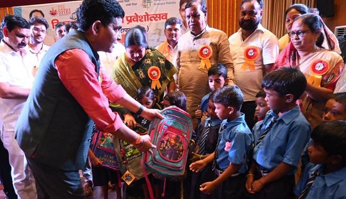 रायपुर, 17 जून 2025/ राजस्व मंत्री टंक राम वर्मा सोमवार को जिला ऑडिटोरियम बलौदाबाजार में शैक्षणिक सत्र 2025-26 अंतर्गत शाला प्रवेश उत्सव के जिला स्तरीय समारोह में शामिल हुए। इस अवसर पर नवप्रवेशी छात्र-छात्राओं क़ो तिलक लगाकर व मुंह मीठा कर अभिनन्दन किया। नवप्रवेशी छात्र-छात्राओं को पाठ्यपुस्तक, गणवेश, बस्ता, टाई-बेल्ट, कम्पास बॉक्स का वितरण भी किया गया। 10वीं एवं 12वीं बोर्ड की परीक्षा में प्रावीण्य सूची में शामिल विद्यार्थियों को सम्मानित किया गया.