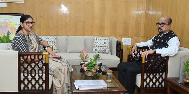 रायपुर, 18 जून 2025/ राज्यपाल रमेन डेका से मंगलवार को राजभवन में छत्तीसगढ़ खाद्य नागरिक आपूर्ति एवं उपभोक्ता संरक्षण विभाग के सचिव रीना बाबा साहेब कंगाले ने सौजन्य भेंट की। उन्होंने विभागीय कार्यों एवं जनप्रतिनिधियों की अद्यतन स्थिति से राज्यपाल को अवगत कराया.