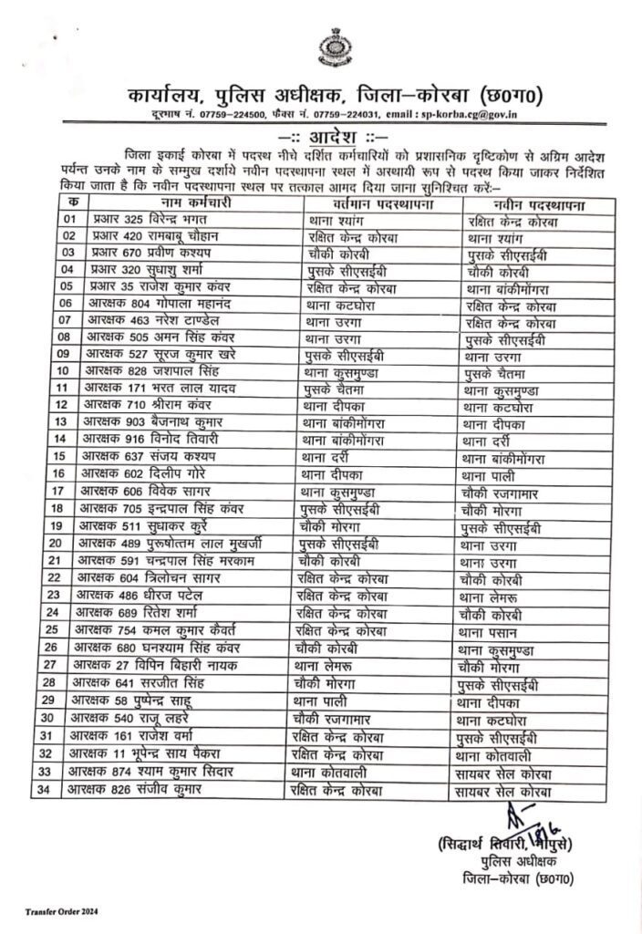 Home छत्तीसगढ़ पुलिस विभाग में बड़ा फेरबदल, 5 प्रधान आरक्षक और 29 आरक्षक हुए... शासकीयछत्तीसगढ़ पुलिस विभाग में बड़ा फेरबदल, 5 प्रधान आरक्षक और 29 आरक्षक हुए प्रभावित, देखें लिस्ट… By संतोष दीवान - June 19, 2025 11 0 FacebookTwitterWhatsAppTelegramEmailPrintCopy URL आकाशवाणी.इन कोरबा, 19 जून 2025/ कोरबा पुलिस अधीक्षक सिद्धार्थ तिवारी ने बुधवार को कार्यों मे कसावट लाने जिले में बड़ा फेरबदल किया है जिसमे 5 प्रधान आरक्षक और 29 आरक्षक प्रभावित हुए. देखें सूची –
