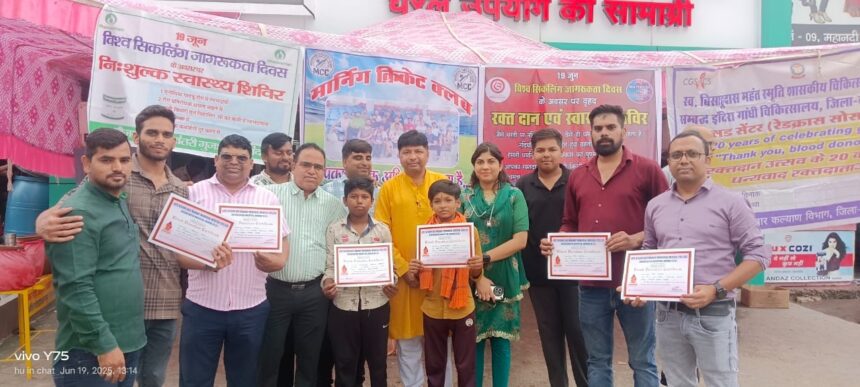 कोरबा, 21 जून 2025/ विश्व सिकलिंग जागरूकता दिवस के अवसर पर मॉर्निंग क्रिकेट क्लब, आयुष मेडिकल एसोसिएशन, लायंस क्लब कोरबा एवरेस्ट एवं नेशनल इंटीग्रेटेड मेडिकल एसोसिएशन के संयुक्त तत्वाधान में एक वृहद रक्तदान शिविर एवं निशुल्क स्वास्थ्य शिविर का आयोजन किया गया। इस शिविर में कुल 25 यूनिट रक्तदान किया गया.