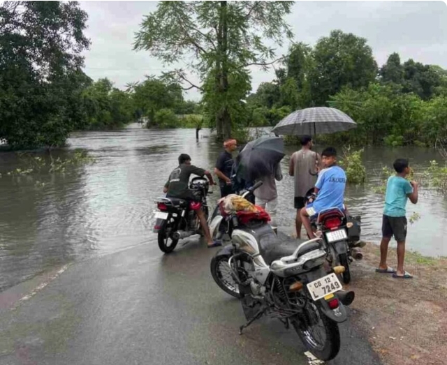 कोरबा, 25 जुलाई 2025.कोरबा जिले में गुरुवार की शाम से लेकर पिछली पूरी रात लगातार बरसात का असर दिखने लगा है.लीलागर नदी उफान पर आ गई है, जिससे पानी पुल के ऊपर से बह रहा है.मार्ग पर आवागमन ठप हो गया है और राहगीरों को घूमकर जाना पड़ रहा है.