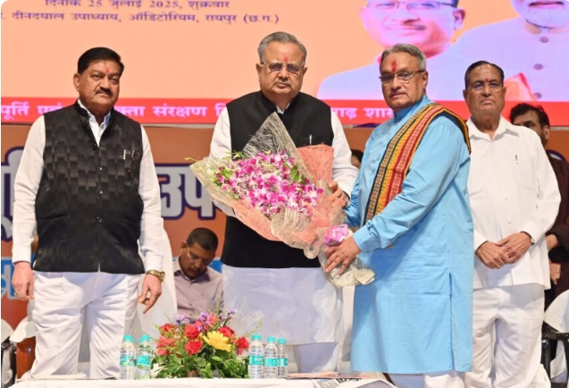 रायपुर, 25 जुलाई 2025 छत्तीसगढ़ विधानसभा अध्यक्ष डॉ. रमन सिंह आज रायपुर के दीनदयाल उपाध्याय ऑडिटोरियम में छत्तीसगढ़ राज्य खाद्य आयोग के नवनियुक्त अध्यक्ष संदीप शर्मा के शपथ ग्रहण समारोह में शामिल हुए.उन्होंने कहा कि किसानों के हित में लगातार संघर्ष करते हुए श्री शर्मा ने संघर्षशील जनप्रतिनिधि के रूप में अपनी छवि बनाई है.सरकार ने उन्हें पीडीएस के तहत राशन कार्डधारियों को गुणवत्तापूर्ण प्रतिमाह राशन मिले, इसके निरीक्षण और परीक्षण के लिए महत्वपूर्ण जिम्मेदारी दी है.डॉ. सिंह ने कहा कि गरीबों और प्राथमिकता वाले परिवारों को गुणवत्तायुक्त राशन मिले, यह महत्वपूर्ण जिम्मेदारी है। उन्होंने नवनियुक्त अध्यक्ष को नई जिम्मेदारी के लिए बधाई और शुभकामनाएं दी.