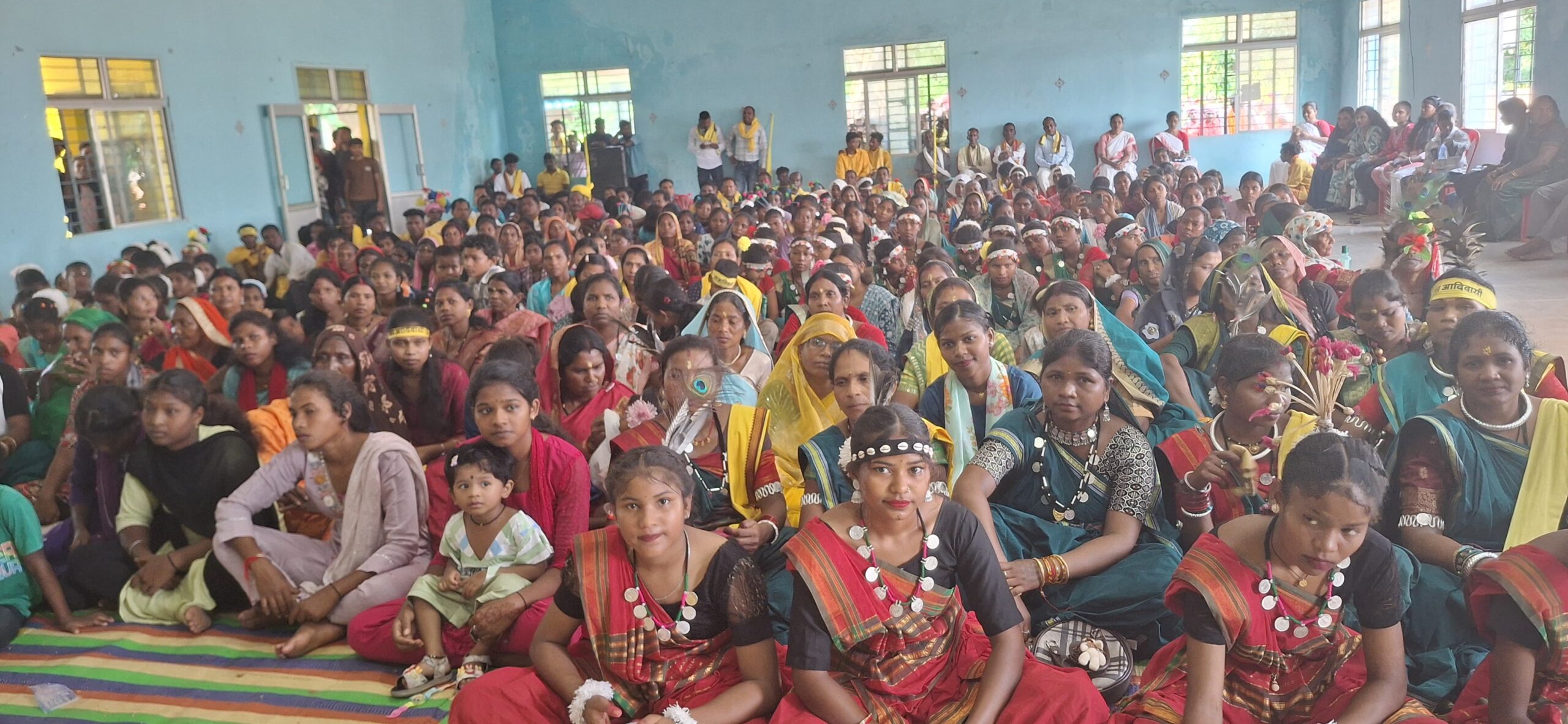 प्रातः मोटरसाइकिल स्वाभिमान रैली 50 किलोमीटर की दूरी तय कर लौटे युवाओं को करमा नृत्य के साथ विधायक ने मांदर की थाप व सभी अतिथियों द्वारा स्वागत कर कार्यक्रम आयोजित स्थल पर आदिवासी रीति रिवाज के अनुसार पुरखा शक्तियों का पूजा अर्चना से शुभारंभ किया गया एवं सभी मुख्य अभ्यागतों का आदिवासी परंपरा अनुसार पांव धोकर, पीला पगड़ी, चावल से तिलक लगाकर स्वागत किया गया.