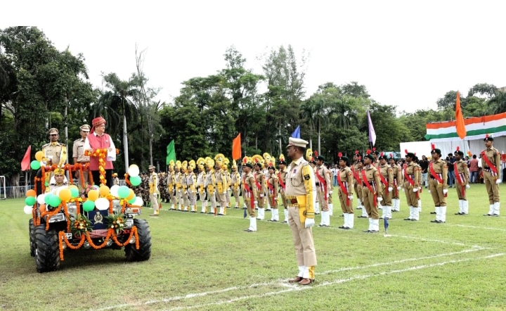 The cultural segment featured patriotic dances and songs performed by students of Delhi Public School, Kendriya Vidyalaya No. 02, Saraswati Shishu Mandir, Government High Schools, Bal Bhawan, and Tiny Cottage. A spectacular tricolour pressure jet spray demonstration by the CISF captivated the audience, adding grandeur to the festivities.