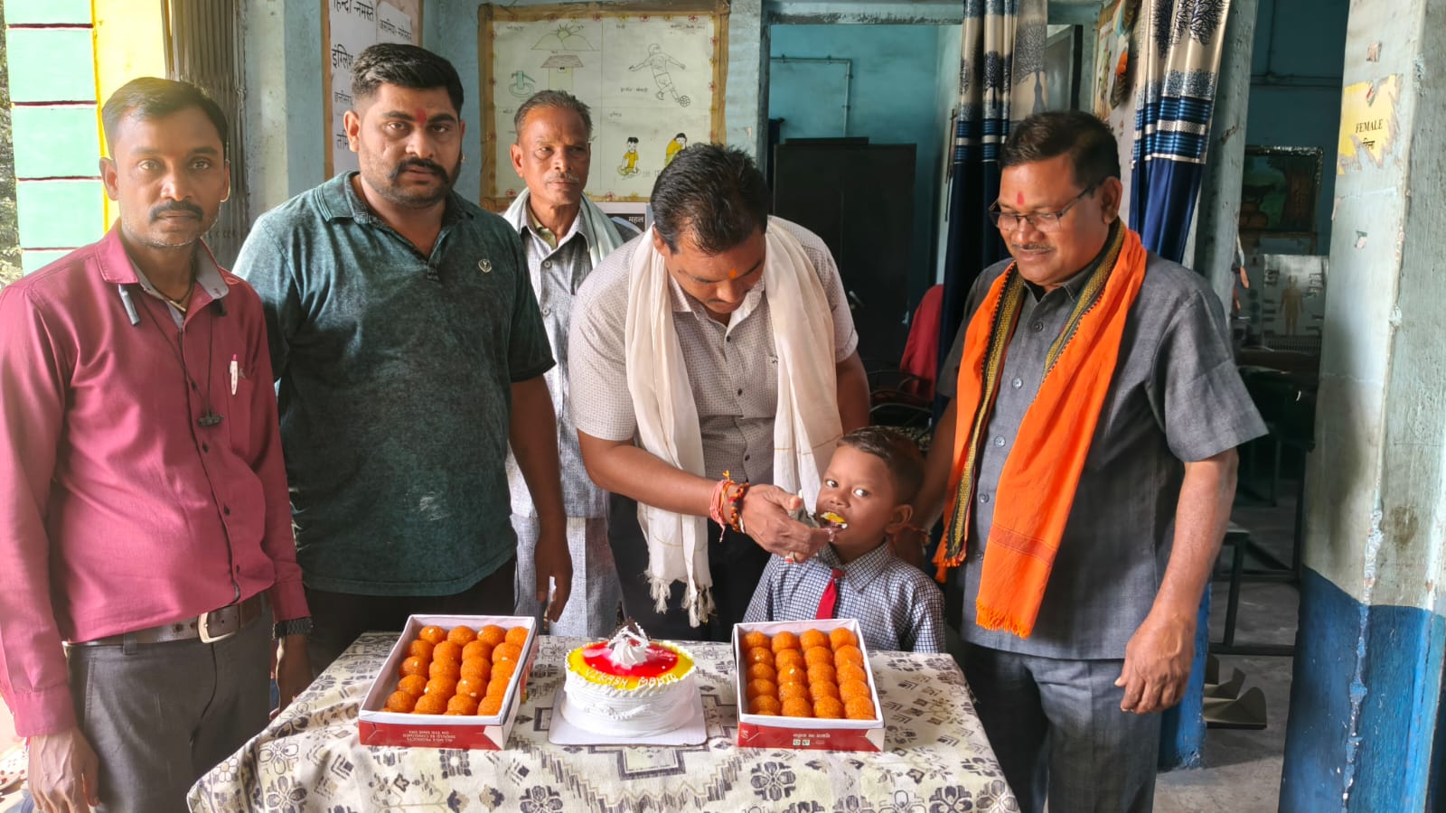 कार्यक्रम की शुरुआत बच्चों द्वारा केक काटकर जन्मदिन मनाने से हुई। इसके बाद बच्चों को स्वादिष्ट व्यंजनों—खीर, पुरी, चावल, दाल, सब्जी, केला, लड्डू और केक का विशेष भोज परोसा गया.