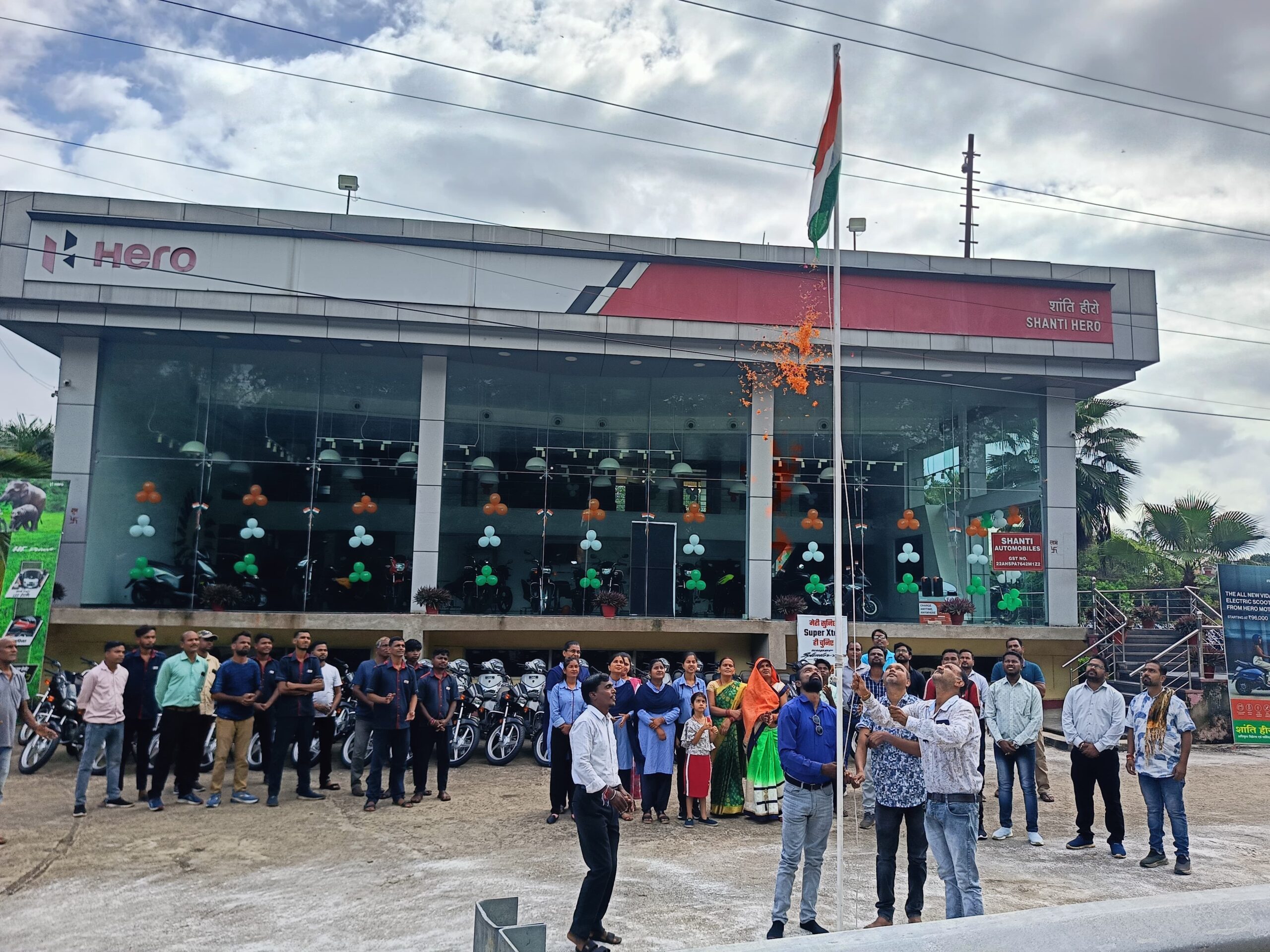 कार्यक्रम के मुख्य अतिथि हेमंत कुमार एवं विशिष्ट अतिथि नितिन शर्मा ने शांति हीरो के समस्त कर्मचारियों को स्वतंत्रता दिवस पर्व की हार्दिक शुभकामनाएं एवं बधाई देते हुए स्वतंत्रता दिवस पर्व मनाए जाने के विषय पर प्रकाश डाला। कार्यक्रम के अंत में प्रसाद वितरण किया गया.