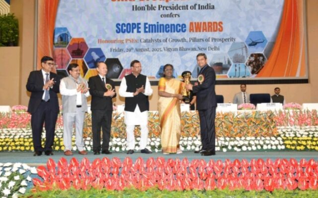 The award was presented by Hon’ble President of India, Smt Droupadi Murmu, at Vigyan Bhawan, New Delhi. The ceremony was graced by Shri Pankaj Chaudhary, Hon’ble Minister of State for Finance, Shri K. Moses Chalai, Secretary (Department of Public Enterprises), Shri K. P. Mahadevaswamy, Chairman (SCOPE), along with CMDs, Directors of other CPSEs.