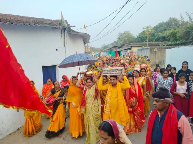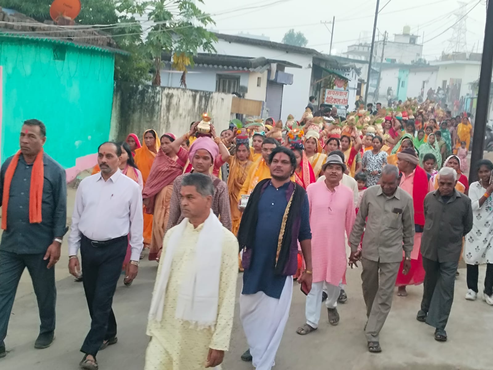 बालकोनगर, 26 नवंबर 2025/ परसाभाठा में संगीतमय श्रीमद् भागवत महापुराण कथा यज्ञ का शुभारंभ बुधवार को भव्य कलश यात्रा के साथ हुआ। इस दौरान नव दुर्गा महिला समिति की अगुवाई में परसाभाठा वार्ड की पारंपरिक परिधान पहनी सैकड़ों महिलाओं व बच्चियों ने सिर पर कलश धारण कर हर्षोउल्लास के साथ पावन मौके पर सहभागिता निभाई। यजमान डॉ. एमएल चंद्रा व राजेश्वरी चंद्रा समेत कथावाचिका देवी तन्नू पाठक, यज्ञाचार्य पंडित दिपक पाठक व पंडित देवेंन्द्र मिश्रा, संरक्षक व वार्ड पार्षद बद्री किरण के अगुवाई में श्रद्धालुगण कलश यात्रा में शामिल हुए। गाजे-बाजे के साथ कलश यात्रा आयोजन स्थल से नवधा पंडाल मार्ग होते हुए बाजार नीचे शिव मंदिर के पास हसदेव नदी की सहायक नदी बेलगरी के तट पर पहुंची। जहां के पूजा घाट से कलश में जल भरकर श्रद्धालु वापस आयोजन स्थल पहुंचे। कलश यात्रा के दौरान पूरा क्षेत्र भक्तिमय हो गया। तत्पश्चात आयोजन स्थल पर वेदी पूजन के साथ श्रीमद् भागवत महापुराण कथा यज्ञ का शुभारंभ हुआ। 26 नवंबर से 4 अप्रैल तक आयोजित उक्त संगीतमय श्रीमद् भागवत महापुराण ज्ञान यज्ञ में प्रतिदिन दोपहर 2 बजे से रात में हरि इच्छा तक कथा वाचन किया जाएगा। नव दुर्गा महिला समिति ने श्रीमद् भागवत महापुराण ज्ञान यज्ञ के पावन कथा के पुण््य को अर्जित करने के लिए सभी शहरवासियों से आयोजन में शामिल होने की अपील की है। कलश यात्रा के दौरान आयोजन समिति के सभी पदाधिकारियों के साथ होरीलाल साहू, वासुदेव, रामस्वरूप साहू सहित बड़ी संख्या में नगरवासी शामिल हुए.