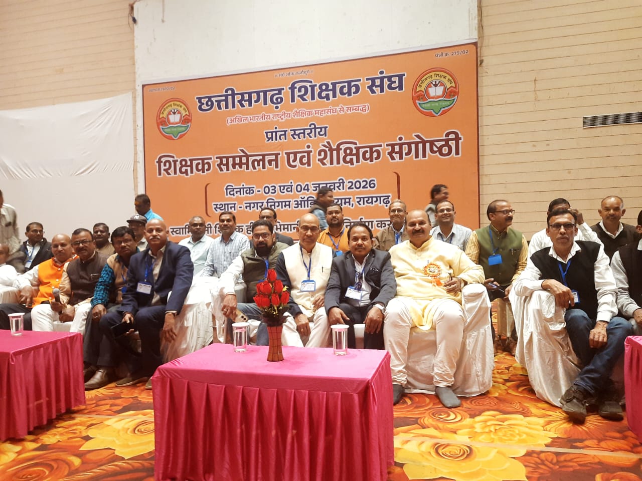 रायगढ़, 06 जनवरी 2026/ छत्तीसगढ़ शिक्षक संघ के तत्वाधान में दो दिवसीय प्रांतीय शिक्षक सम्मेलन एवं शैक्षिक संगोष्ठी का भव्य आयोजन तीन-चार जनवरी को कलाधानी रायगढ़ में प्रमुख संगठन मंत्री ओंकार सिंह ठाकुर के मार्गदर्शन एवं प्रांत अध्यक्ष संजय सिंह ठाकुर के नेतृत्व में आयोजित किया गया। इस समागम का मुख्य ध्येय राष्ट्रहित,शिक्षाहित, शिक्षार्थी हित एवं शिक्षक हित के चार पुरुषार्थों को केंद्र में रखकर शिक्षक समाज को राष्ट्र निर्माण की मुख्य धारा से जोड़ना था। दो दिनों तक चले इस वैचारिक कुंभ में प्रदेश भर के हजारों शिक्षक प्रतिनिधियों ने अपनी उपस्थिति दर्ज कराई कोरबा जिला से मानसिंह राठिया जिला अध्यक्ष के नेतृत्व में सैकड़ों शिक्षकों ने भाग लिया ।उद्घाटन सत्र में मुख्य वक्ता नारायण नामदेव पालक संघ अधिकारी ने शिक्षक केवल सूचनाओं का प्रदाता नहीं बल्कि चरित्र का निर्माता निरूपित करते हुए कहा जब तक शिक्षक आर्थिक और सामाजिक रूप से सुरक्षित नहीं होगा तब तक शिक्षार्थी और शिक्षा के व्यापक हितों की रक्षा नहीं कर पाएगा ।मानसिंह राठिया ने आगे बताया कि राष्ट्रीय शिक्षा नीति NEP 2020 पर प्राध्यापक आलोक शर्मा, बी.रघु उप सचिव माध्यमिक शिक्षा मंडल, डाइट प्राचार्य अनिल पैकरा ने प्रोजेक्टर के माध्यम से NEP 2020 पर सारगर्भित बयान देते हुए कहा की मुख्य बिंदु मातृभाषा, कौशल विकास और रटंत प्रणाली से मुक्ति । NEP 2020 भारतीय ज्ञान परंपरा को आधुनिक विज्ञान से जोड़ने का ऐतिहासिक अवसर है ।