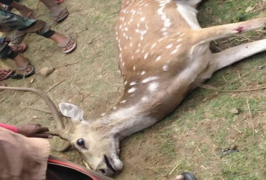 कोरबा,10 जनवरी 2026/ छत्तीसगढ़ के कोरबा जिले के पाली वन परिक्षेत्र अंतर्गत ग्राम रंगोले में एक मादा वयस्क हिरण की दर्दनाक मौत हो गई। पानी और चारे की तलाश में गांव के पास पहुंची हिरण पर पहले आवारा कुत्तों ने हमला किया, जिसके बाद जान बचाकर भागते समय वह नेशनल हाईवे पर पहुंच गई और एक अज्ञात वाहन की चपेट में आ गई.