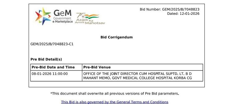 कोरबा,13 जनवरी 2026/ मेडिकल कॉलेज न्यूज़ कोरबा के शासकीय मेडिकल कॉलेज अस्पताल में मरीजों की डाइट सर्विस (Hospital Diet Service) से जुड़ा करीब 2 करोड़ रुपये का टेंडर गंभीर विवादों में घिर गया है। आरोप है कि GeM Portal Tender प्रक्रिया को केवल औपचारिकता बनाकर मनपसंद ठेकेदार को लाभ पहुंचाने की तैयारी की गई है.