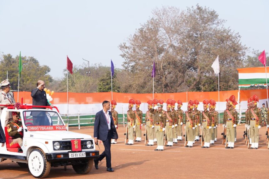 रायपुर, 26 जनवरी 2026/ गणतंत्र दिवस के अवसर पर राज्यपाल रमेन डेका द्वारा आज यहां राजधानी रायपुर में पुलिस परेड ग्राउंड में राष्ट्रीय ध्वज फहराया गया और परेड की सलामी ली गई। परेड निरीक्षण के दौरान मुख्य सचिव विकास शील और पुलिस महानिदेशक अरूण देव गौतम भी उपस्थित थे.