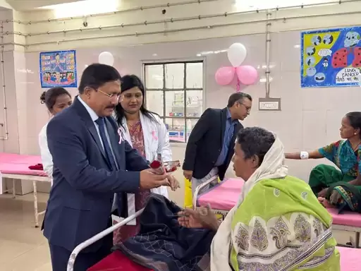 कोरबा, 07 फरवरी 2026/ विश्व कैंसर दिवस पर बुधवार को मेडिकल कॉलेज अस्पताल के कैंसर डिपार्टमेंट के आईपीडी में भर्ती मरीजों से डीन डॉ. केके सहारे ने मिलकर उनका हालचाल जाना। वहीं अस्पताल में समय पर पहुंचकर कैंसर के खिलाफ जंग लड़ते हुए स्वस्थ होने पर उन्हें गुलाब भेंट किया। इस दौरान उनके साथ कैंसर डिपार्टमेंट की एचओडी डॉ. उपासना जायसवाल, कैंसर स्पेशलिस्ट डॉ. दीपका नगेशिया मौजूद थी। वहीं इस मौके पर कॉलेज में कैंसर जागरूकता के लिए मेडिकल कॉलेज के छात्रों की रंगोली बनाने की प्रतियोगिता आयोजित की गई.