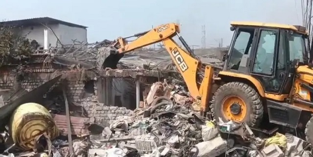 कोरबा, 16 मार्च 2026/ कोरबा निगम क्षेत्र में आज सुबह एक बड़ी कार्रवाई की गई। नगर पालिक निगम के वार्ड राताखार में गणेश मंदिर के सामने एक कबाड़ी के द्वारा कराए गए बड़े और अवैध निर्माण को जेसीबी के माध्यम से ढहा दिया गया। इस पूरी कार्रवाई के दौरान बड़ी संख्या में पुलिस बल तैनात रहा। निगम आयुक्त आशुतोष पांडेय, राजस्व अधिकारी, पुलिस अधिकारी भी यहां मौजूद रहे। नगर निगम, जिला व पुलिस प्रशासन की संयुक्त कार्रवाई में इस अवैध निर्माण को धराशाई किया गया। बताया जा रहा है कि उक्त कबाड़ी का मकान भी बेजा कब्ज में बना हुआ है जिस पर भी जेसीबी चलाने की तैयारी थी किंतु हंगामा के कारण इसे स्थगित करना पड़ा है.