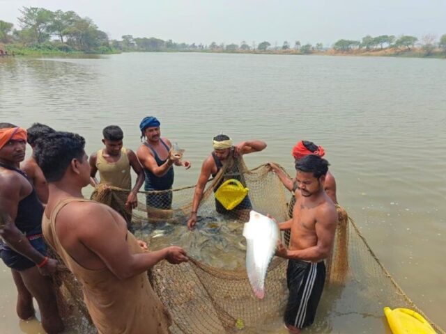 कोरबा, 28 मार्च 2026/ विकासखंड करतला के ग्राम उमरेली स्थित जय सिंगारासती मछुआ सहकारी समिति मर्यादित ने यह सिद्ध किया है कि यदि सही योजना, संसाधनों का कुशल उपयोग और मेहनत एक साथ हों, तो ग्रामीण आजीविका में उल्लेखनीय वृद्धि संभव है। समिति ने अपने ग्राम पंचायत के सिंघरी तालाब, पुरैनहा तालाब, घेसरा डबरी और डबरी तालाब जिनका कुल रकबा 8.972 हेक्टेयर है, को 10 वर्ष के लिए लीज पर लेकर मछली पालन का कार्य प्रारंभ किया.