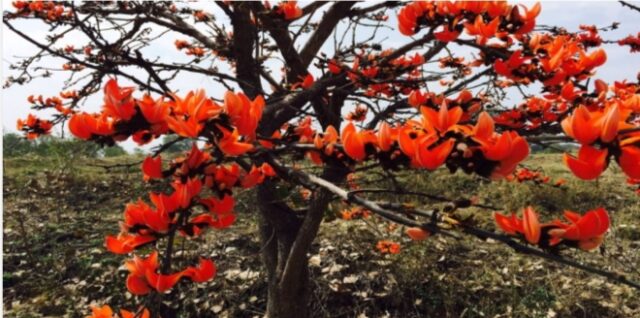 कोरबा, 29 अप्रैल 2026/ बसंत की हल्की आहट के साथ ही जब हवा में एक अलग-सी सुगंध घुलने लगती है, तब जंगलों का रंग अचानक बदल जाता है। हरियाली के बीच एक तेज, चमकदार नारंगी-लाल रंग उभरता है, यह है पलाश। जिसे लोग ढाक, टेसू या फ्लेम आफ दी फारेस्ट के नाम से जानते हैं। दूर से निहारें तो ऐसा प्रतीत होता है मानो जंगल सचमुच आग की लपटों में सिमटकर भी मुस्कुरा रहा हो। पर पलाश केवल एक सुंदर दृश्य नहीं है। यह छत्तीसगढ़ के आदिवासी जीवन की धड़कन है, रोजगार का साधन, परंपरा का हिस्सा, औषधि का स्रोत और आत्मसम्मान के साथ ही ये पलाश का फूल जंगलवासियों की जिंदगी में घोल रहा खुशियों का रंग.