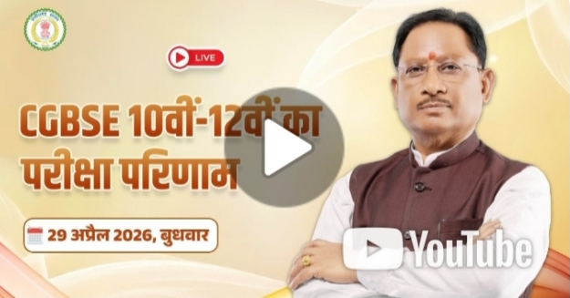 रायपुर, 29 अप्रैल 2026/छत्तीसगढ़ में 10वीं और 12वीं के विद्यार्थियों का इंतजार खत्म हो गया है, जहां मुख्यमंत्री विष्णु देव साय ने 10वीं और 12वीं बोर्ड के नतीजे (CGBSE Results 2026) जारी कर दिए हैं।डायरेक्ट लिंक ऑफिशियल वेबसाइट cgbse.nic.in या Digilocker की साइट digilocker.gov.in पर एक्टिव हो गया है